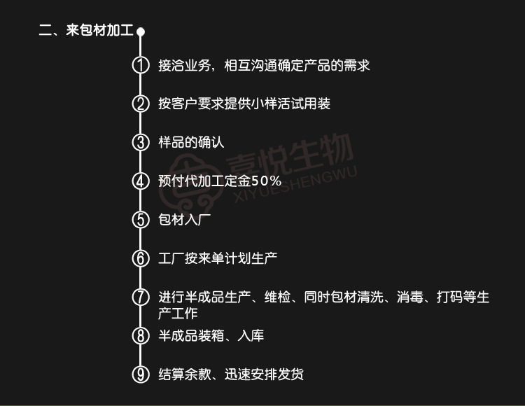 温馨提醒:可免费为客户提供样品!需要拿样的客户请联系旺旺客服或来电咨询:186-7596-5561袁经理(样品不向个人买家提供,仅向有OEM贴牌加工意向客户提供,谢谢您的理解和配合!) |